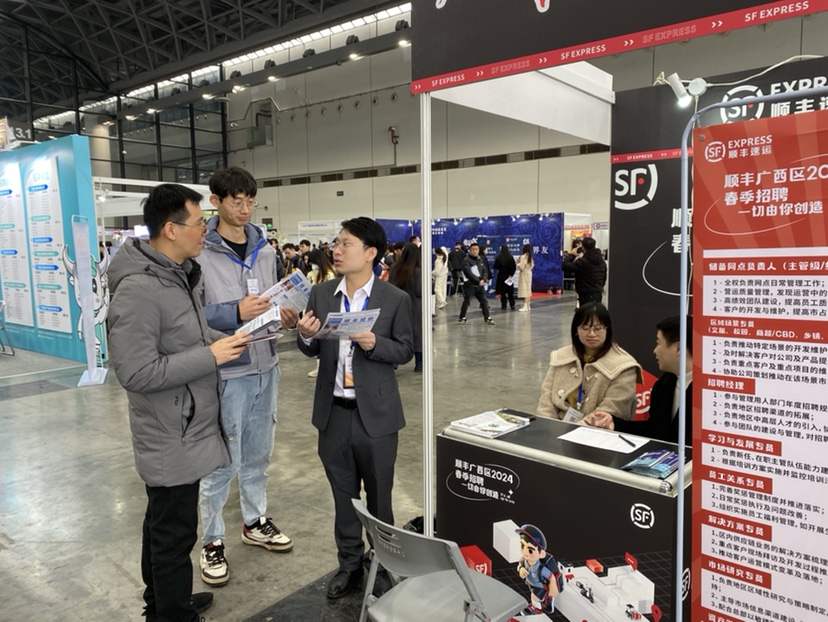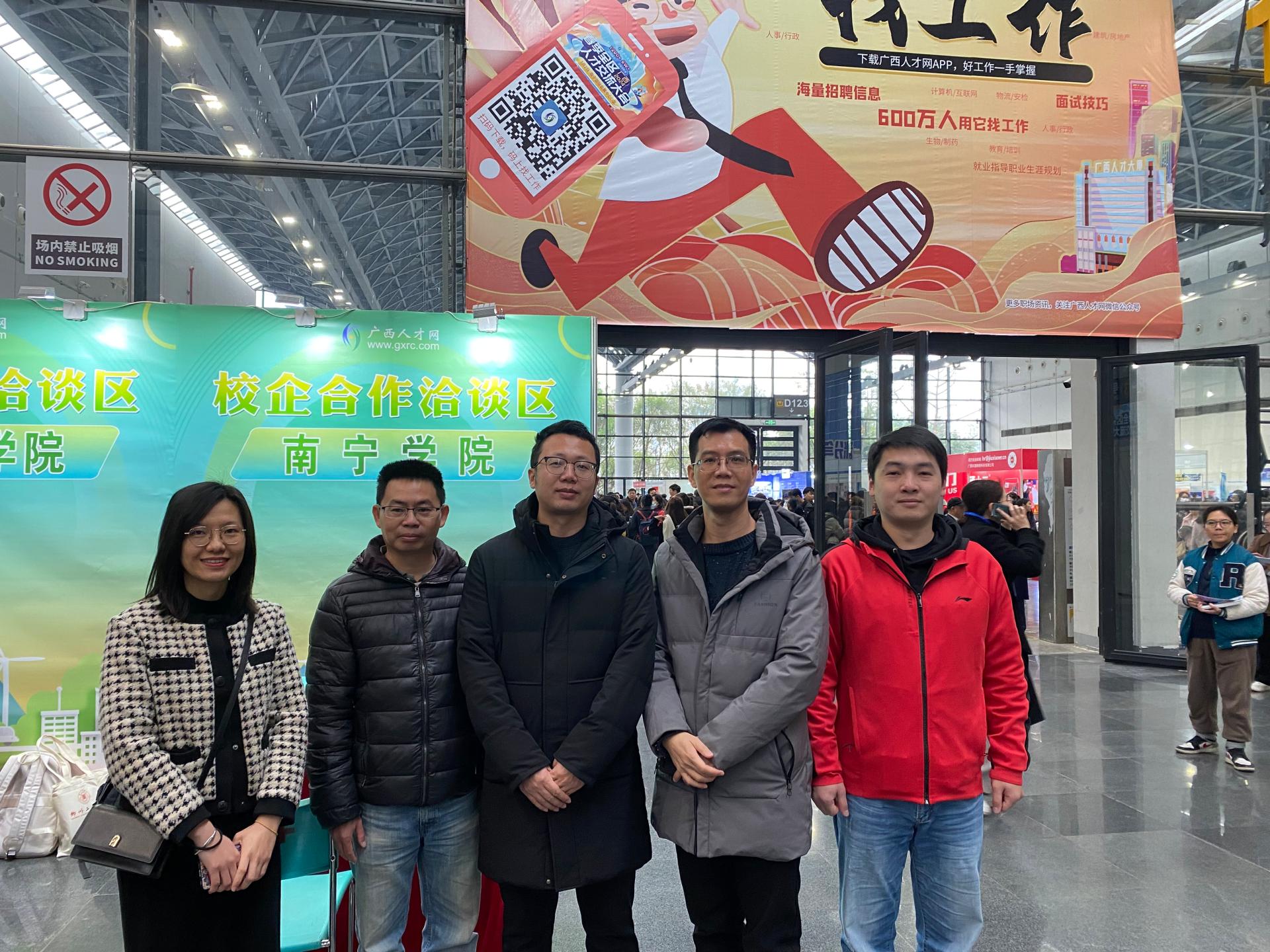 • 32日,中国广西人才市场“2024年春季全区人才交流大会在南宁国际会展中心举办。为有效汇聚社会各方资源,拓展优质就业岗位,加强访企拓岗促就业工作,在南宁学院就业指导中心的组织协调下,艺术与设计学院工艺美术教研室主任王春伟、视觉传达设计教研室主任邓海贝、环境设计教研室主任袁国凯,学生科科长覃兆刚及2024届毕业班辅导员代表组成调研组到大会现场走访招聘企业,开展访企拓岗专项行动。