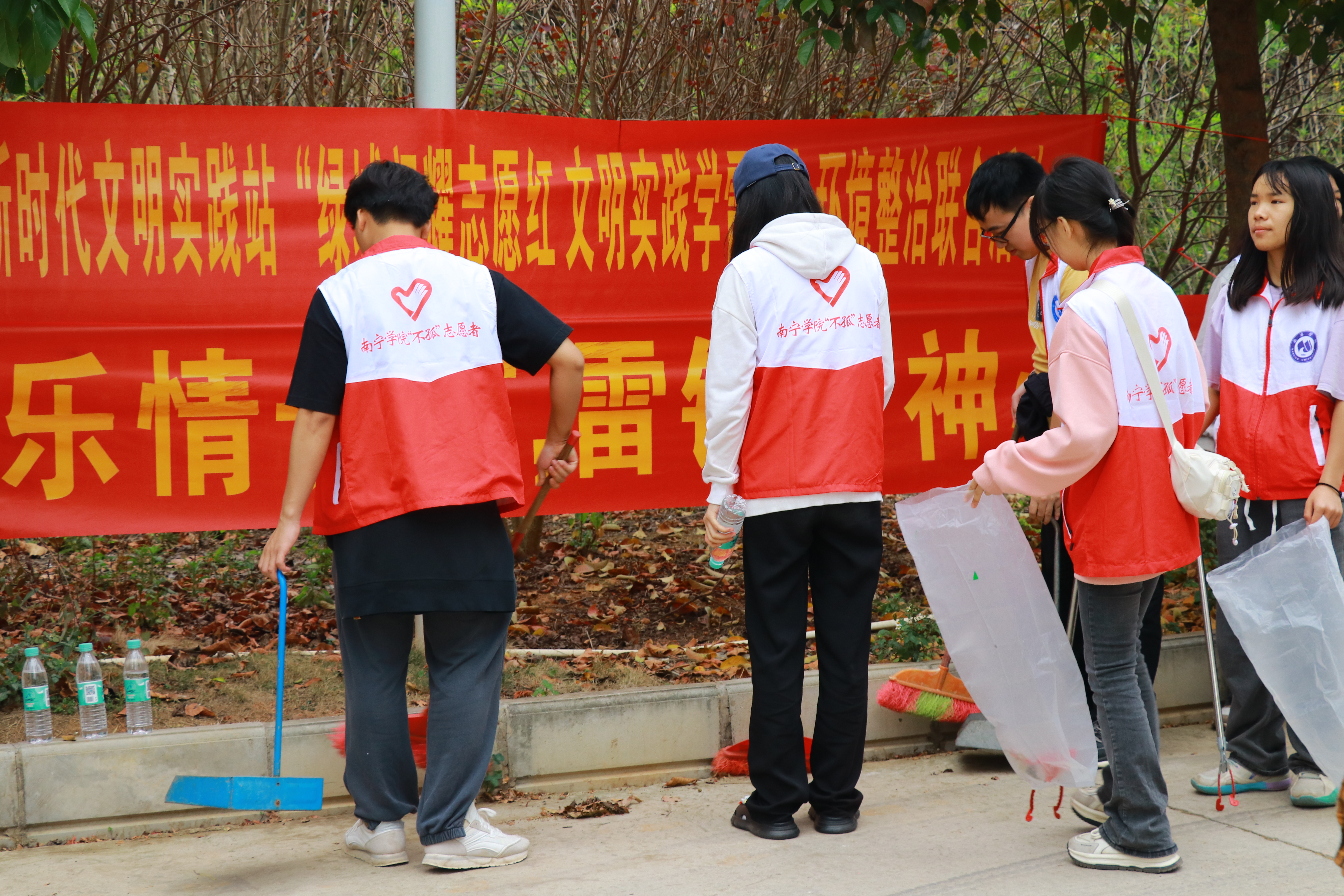 3月18日上午,艺术与设计学院在校内、外开展了“学雷锋”志愿服务活动。学院80多名学生踊跃报名争当“学雷锋”志愿者,并分成四个小组开展活动,其中第一、二组由学院学生科科长覃兆刚及辅导员李水生、蓝克老师带队前往南宁市邕宁区新兴社区开展志愿服务活动,第三、四组由辅导员郭莉、王振迎、刘付春婷、黄洁婷、黄钰善老师带队在校内敷文园综合楼开展卫生清扫活动。