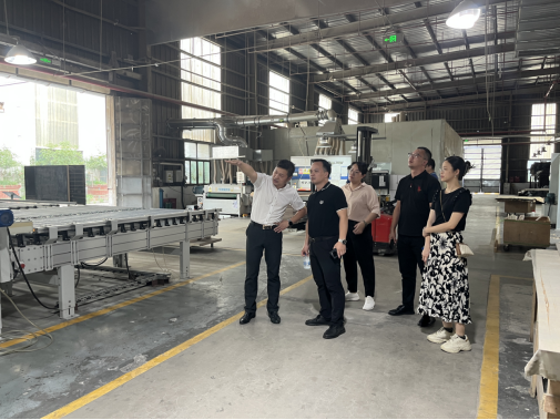交流会上,蓝志军副院长就专业建设、人才培养、岗位需求等内容与集团汤银兵副总经理进行了深入的交流与调研,且与部分在公司工作的我校毕业生进行了交谈,希望学生们能够能沉下心去工作,稳扎稳打、不断历练。会后,在集团汤副总的引导、陪同下一同前往上海总公司、昆山市生产线进行家居制作的学习、调研,了解公司工作全过程。