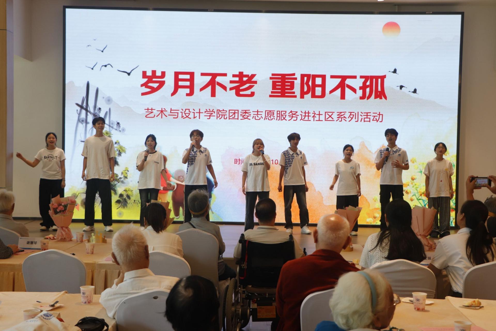 在我国传统节日重阳节来临之际,为弘扬尊老、敬老、爱老、助老的优良传统,10月10日上午,艺术与设计学院师生志愿者赴广西前海人寿幸福之家开展“岁月不老 重阳不孤”志愿服务活动,为老人们送去温暖和关爱。本次志愿服务活动由学院团委书记覃兆刚带队,学院学生第一党支部书记郭莉,学生第二党支部书记王振迎,学院宣传员陆娜以及20名学生“不孤”志愿者共同参与。