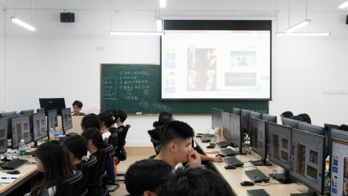 新媒体专业学生认真学习课程内容