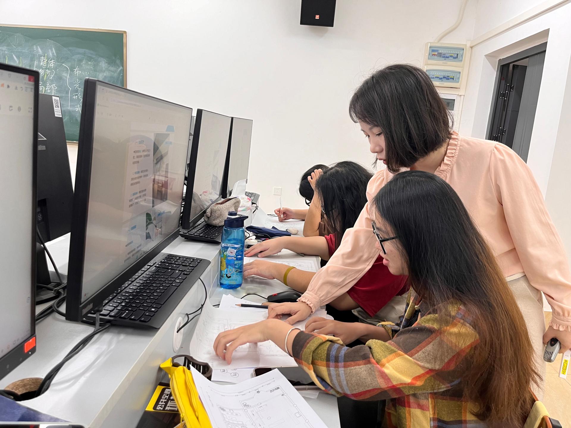 本次公开课授课内容为公共空间中的照明设计,采用当前火爆话题“黑神话悟空”游戏场景中光影效果微话题进行课程导入,同学们兴趣盎然。随后的布光形式的案例选用同学们熟悉的校园中新华书店场景,不仅让他们更好的感知知识点,亦向同学们表达环境设计其实就在我们身边,对生活更细心可帮助我们的专业成长。在项目的灯具布置时强调制图规范与行业规范,并说明“标准”的重要性,要培养细致、严谨、精益求精的工匠精神。