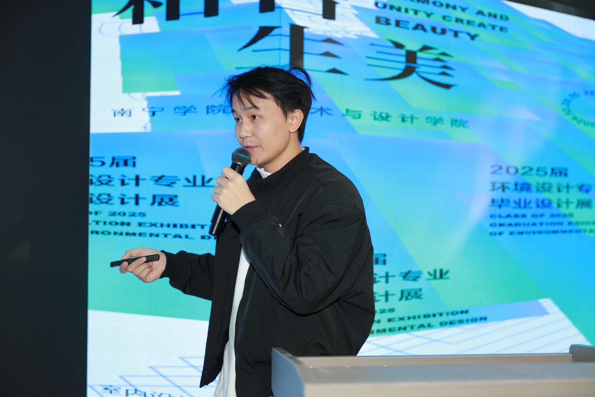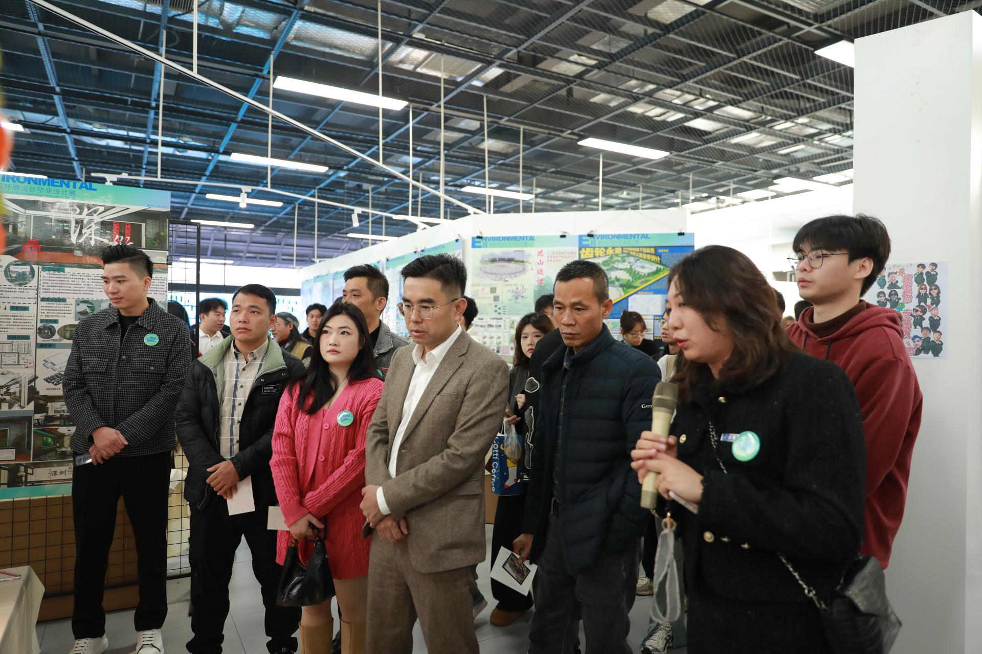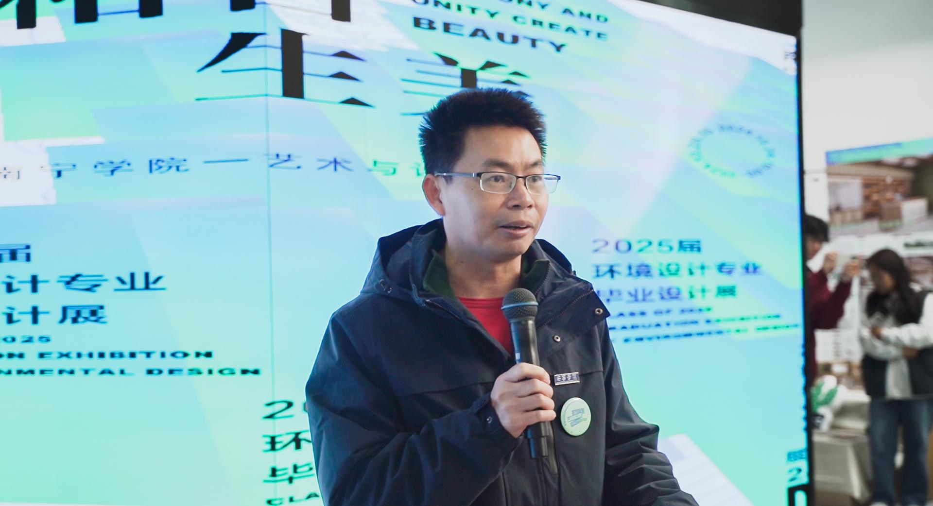 2024年12月24日,艺术与设计学院2025届环境设计专业毕业设计展在综合楼艺术展厅开幕,南宁市建规集团生态园林分院院长廖志宇、广西湛江设计力量会长吴董鹏 、广西湛江设计力量名誉会长杨峻等理事成员,南宁学院教育学院副院长顾晨光博士、艺术与设计学院院长黄宇、艺术与设计学院党委副书记岑铭君及师生代表出席开幕式。开幕式由艺术与设计学院副院长王春伟主持。