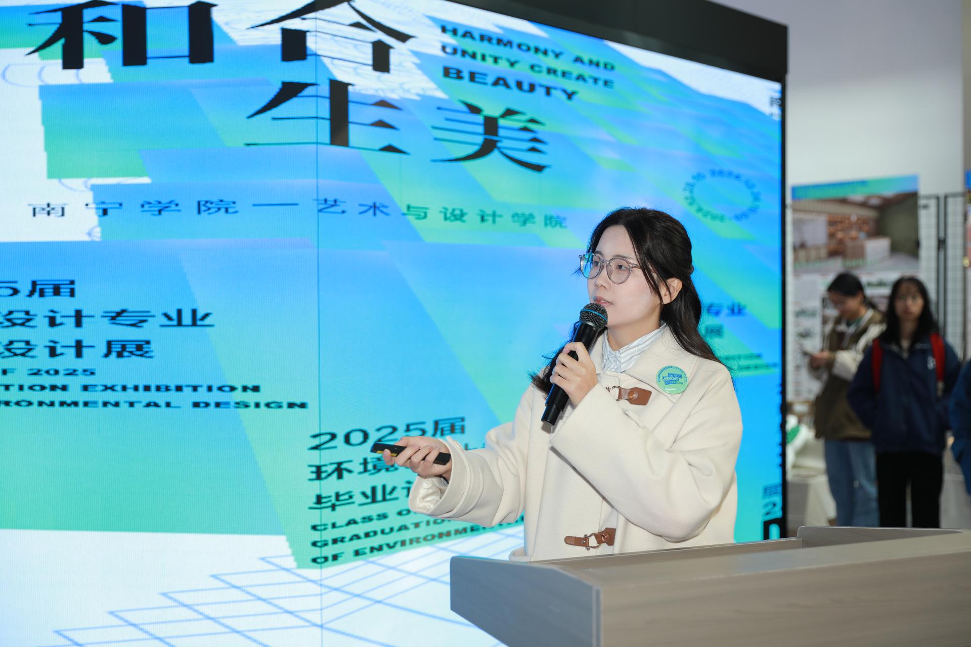 本次毕业展主题是“和合生美”,寓意着和谐、融合从而形成共生之美。这一主题不仅体现了环境设计专业师生对设计美学的追求,关注设计与环境的和谐共生、环境与生活之间的关系,以及注重设计与城市智能化、数字文化应用、虚拟仿真表现、元宇宙设计、风景园林设计等多专业之间的融合及学科之间交叉创新应用,更传递了环境设计专业师生对未来生活的美好愿景。