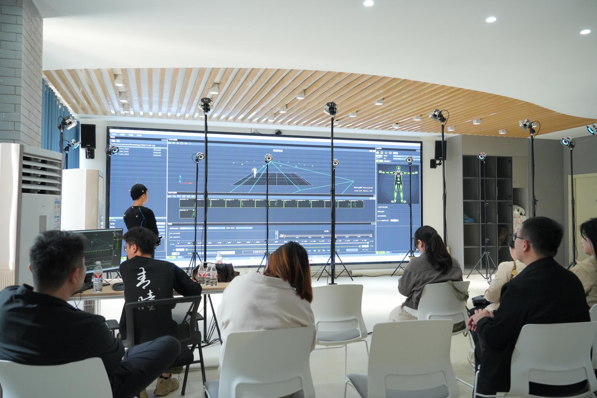 在实操环节,青瞳视觉的专业技术工程师邹唯带领老师及同学亲身体验了动作捕捉设备的操作流程。 学员们身着专业动作捕捉服,在虚拟场景中进行表演,实时生成的动作数据被精准地映射到虚拟角色上,实现了虚拟与现实的完美融合。同学们纷纷表示,这种沉浸式的学习体验让他们对动作捕捉技术有了更直观的认识,也激发了他们对虚拟拍摄技术的浓厚兴趣。
