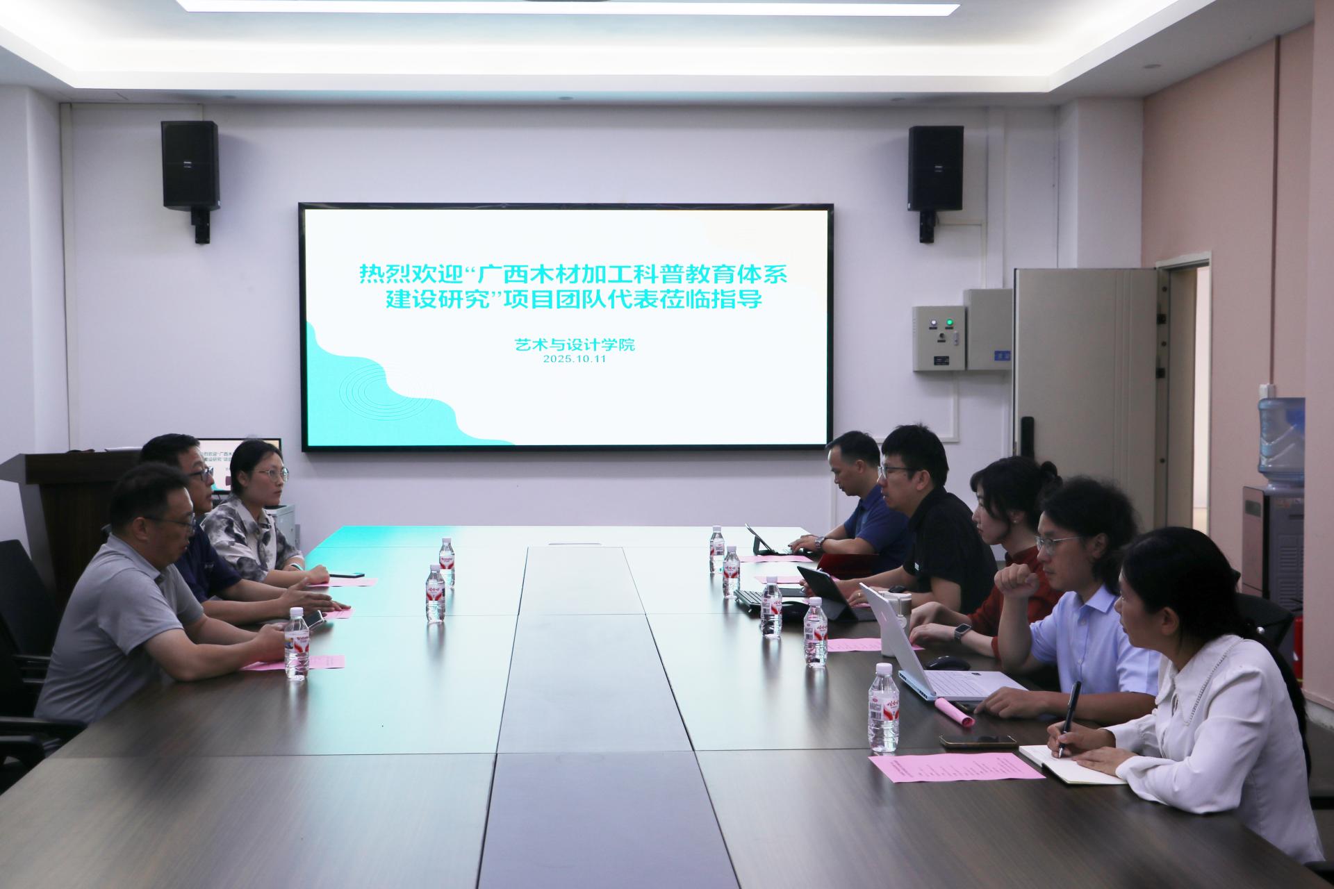 2025年10月11日上午,广西林科院森林旅游与康养研究所所长唐庆、《广西林业》杂志副主编蒋林林、广西林科院刘廷婷一行访问南宁学院艺术与设计学院,围绕“广西木材加工科普教育体系建设研究”课题开展深度调研。