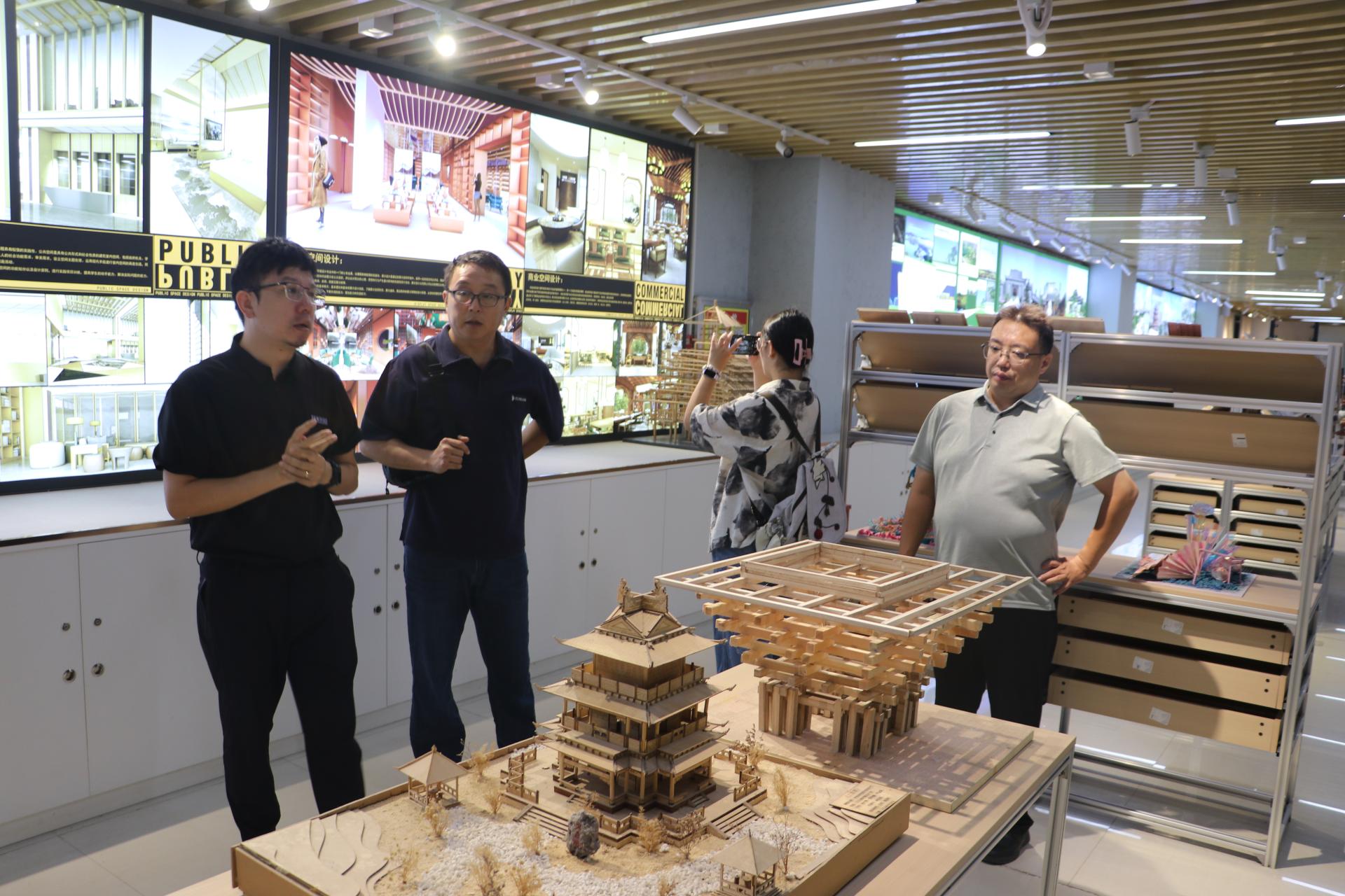 艺术与设计学院院长黄宇、环境设计教研室主任袁国凯陪同来宾参观了敷文艺创展厅。