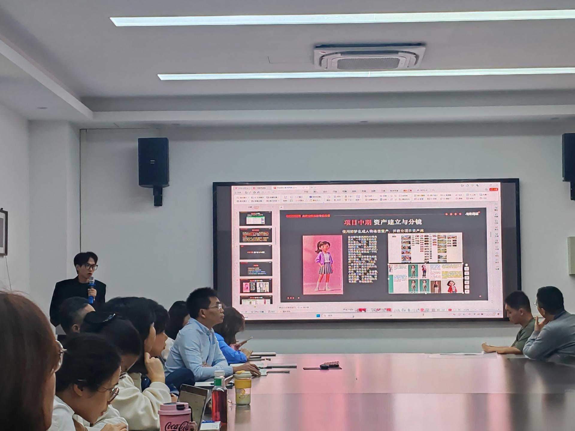 培训会上,与光同尘公司的培训导师杨老师深入剖析了AI在设计领域的应用全景。在商业应用场景中,AI能快速完成海量风格的概念草图与方案延伸,极大提升品牌设计效率;在动漫短片创作中,AI技术在分镜生成、角色与场景设定、动态预演等环节正重塑着传统生产流程。杨老师还分享了与光同尘公司的实战案例——中国农业银行的品牌动画短片,从项目前期的AI概念构思与风格探索开始,展示了如何通过提示词生成多种艺术风格的初始创意;到项目中期的AI辅助原画、分镜绘制与动态预演,实现了创意的快速迭代与精准定位;直至项目后期AI技术在高清渲染与特效合成中的高效应用,以及运用AI生成的部分镜头有些许瑕疵,如何用技术解决,确保项目高质量落地。