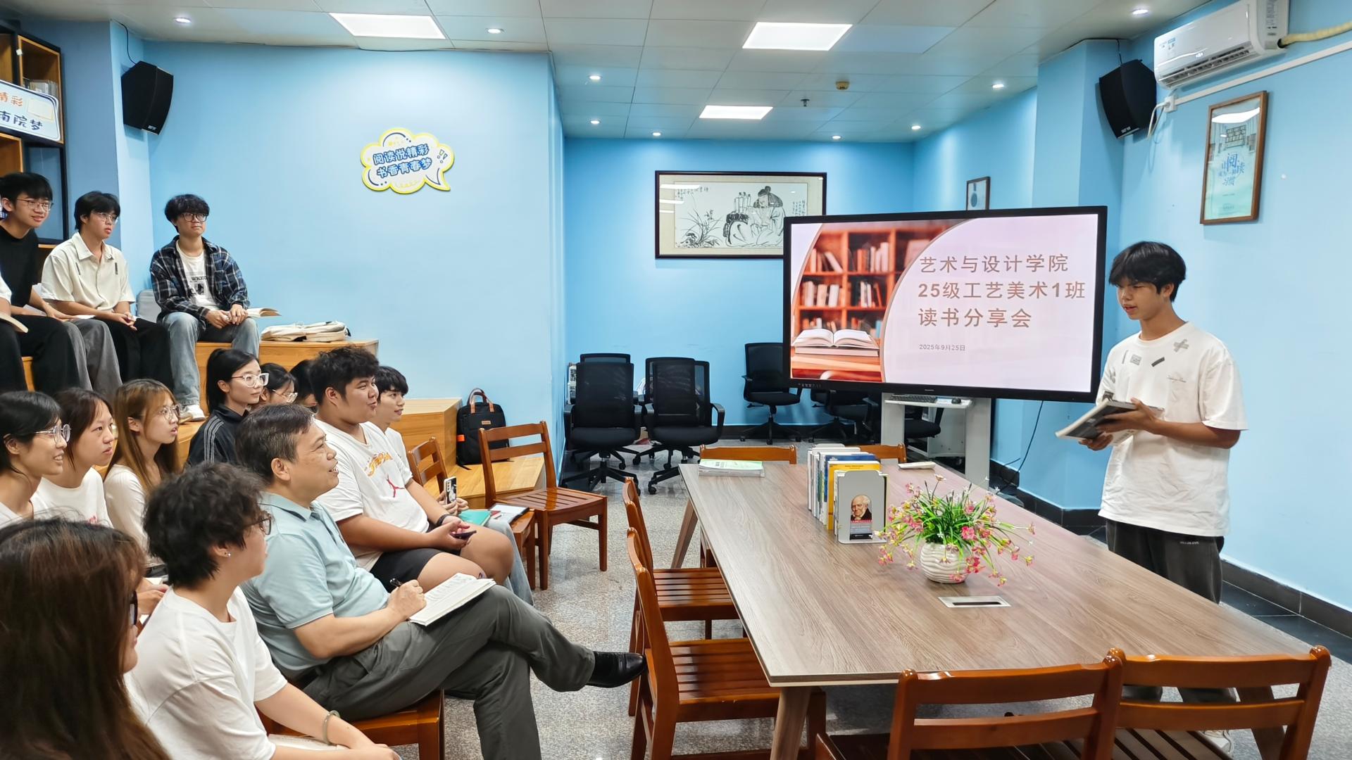 此次读书分享会的举办,不仅给2025级工艺美术1班营造了爱读书、读好书、善读书的班级氛围,更助力同学们明确了读书与专业成长、校园适应、全面发展的内在关联。通过师生共读、思想碰撞,同学们既坚定了深耕专业、传承创新的信念,也感受到了学校的关怀与温暖,为后续在校园中平衡学习与生活、提升综合素养奠定了良好基础。(艺术与设计学院供稿 图、文/覃兆刚 一审一校:杨桂财 二审二校:岑铭君 三审三校:黄宇)