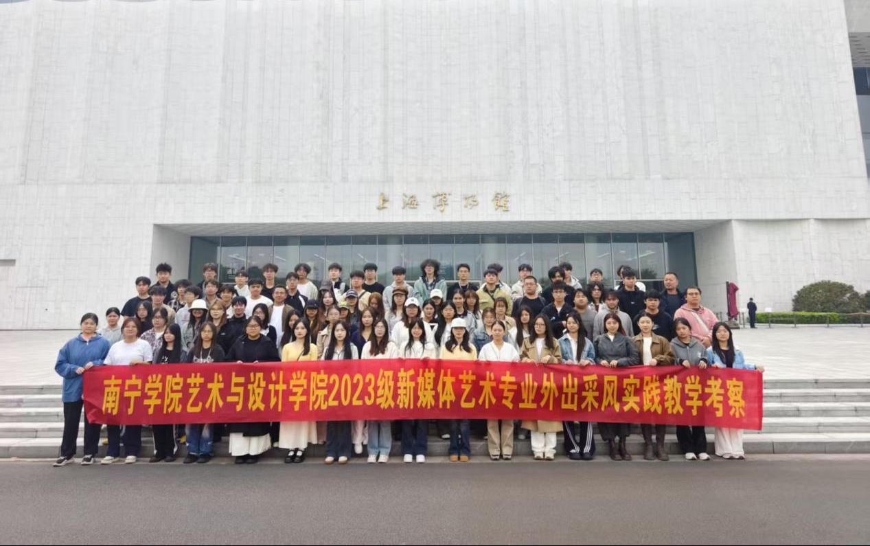 为深化2023级新媒体艺术专业学生对城市文化与行业实践的理解,拓宽艺术视野,提升专业实操能力。2025年10月27日-11月2日,南宁学院艺术与设计学院徐党卿、任梦琪、邓琪艺三位老师带领2023级新媒体艺术专业全体学生赴上海开展了为期七天的《专业综合考察》课程实践活动。本次考察带领学生走进上海的地标建筑、知名企业与专业场馆,开启了一场理论与实践深度融合的学习之旅。