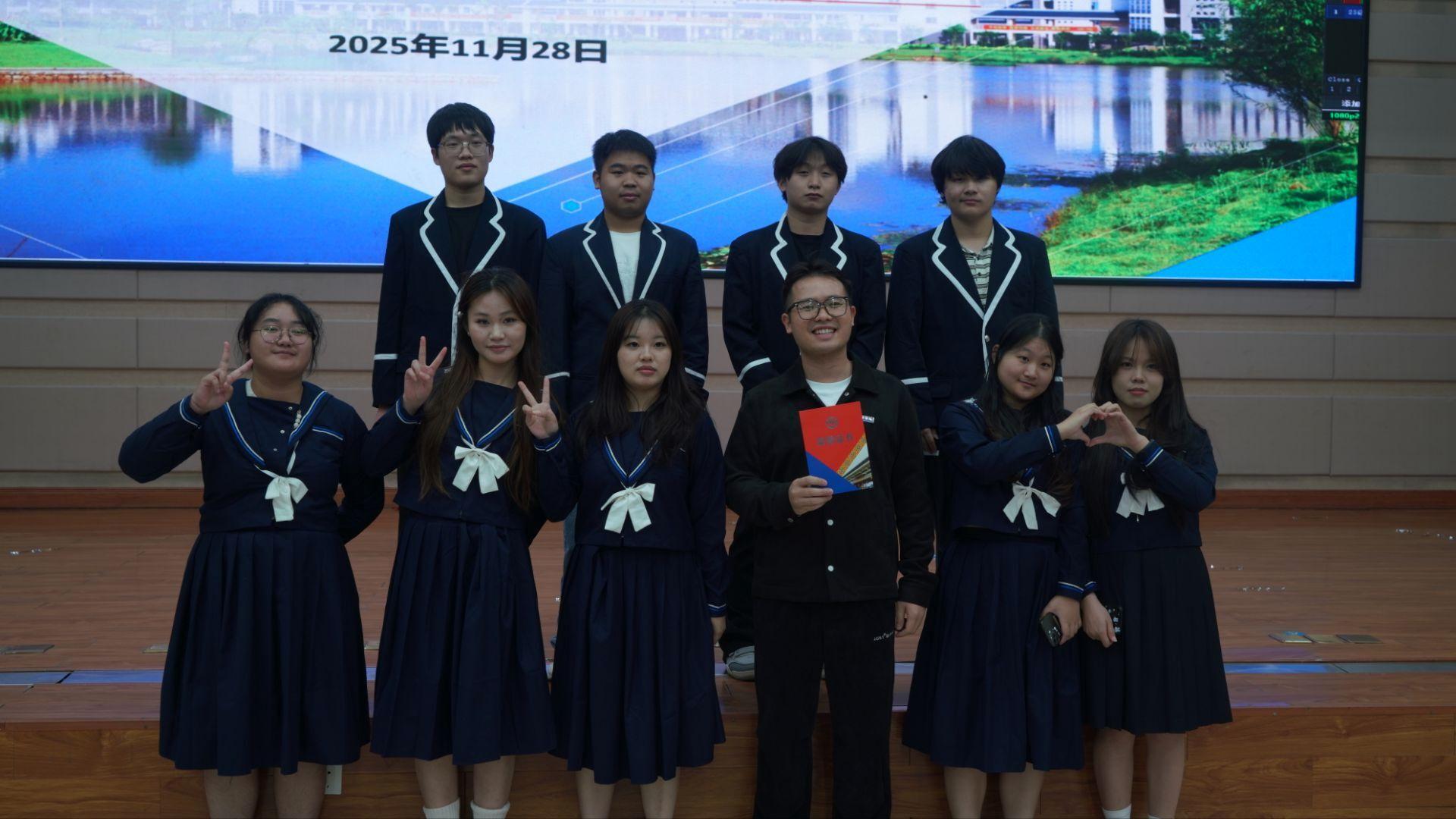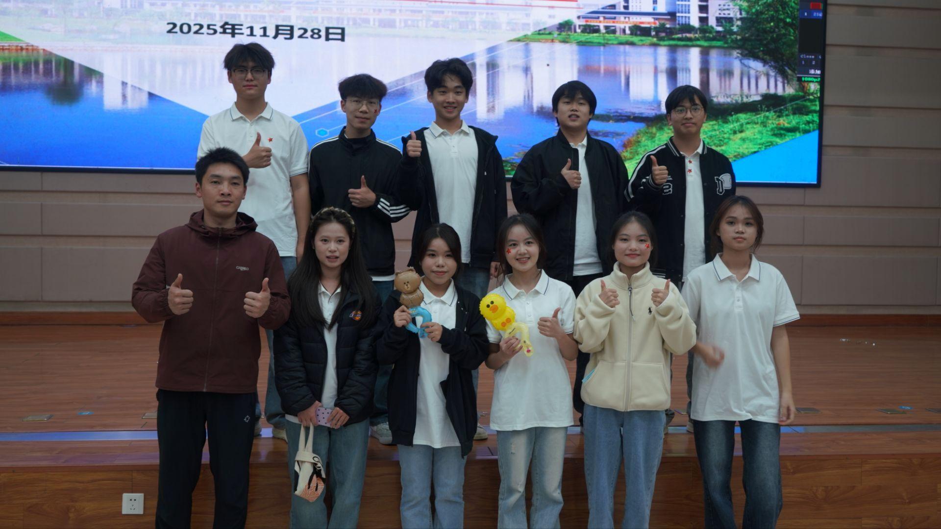 学生科科长覃兆刚,专职辅导员郭莉、黄洁婷、王振迎,学生会主席李悦组成专业评委团,与全体新生及学生干部共同见证了这场青春盛宴。比赛汇聚了学院4个专业新生班级组建的14支参赛队伍,绚丽的舞台、专业的音响与热情洋溢的观众共同营造出热烈的赛事氛围。