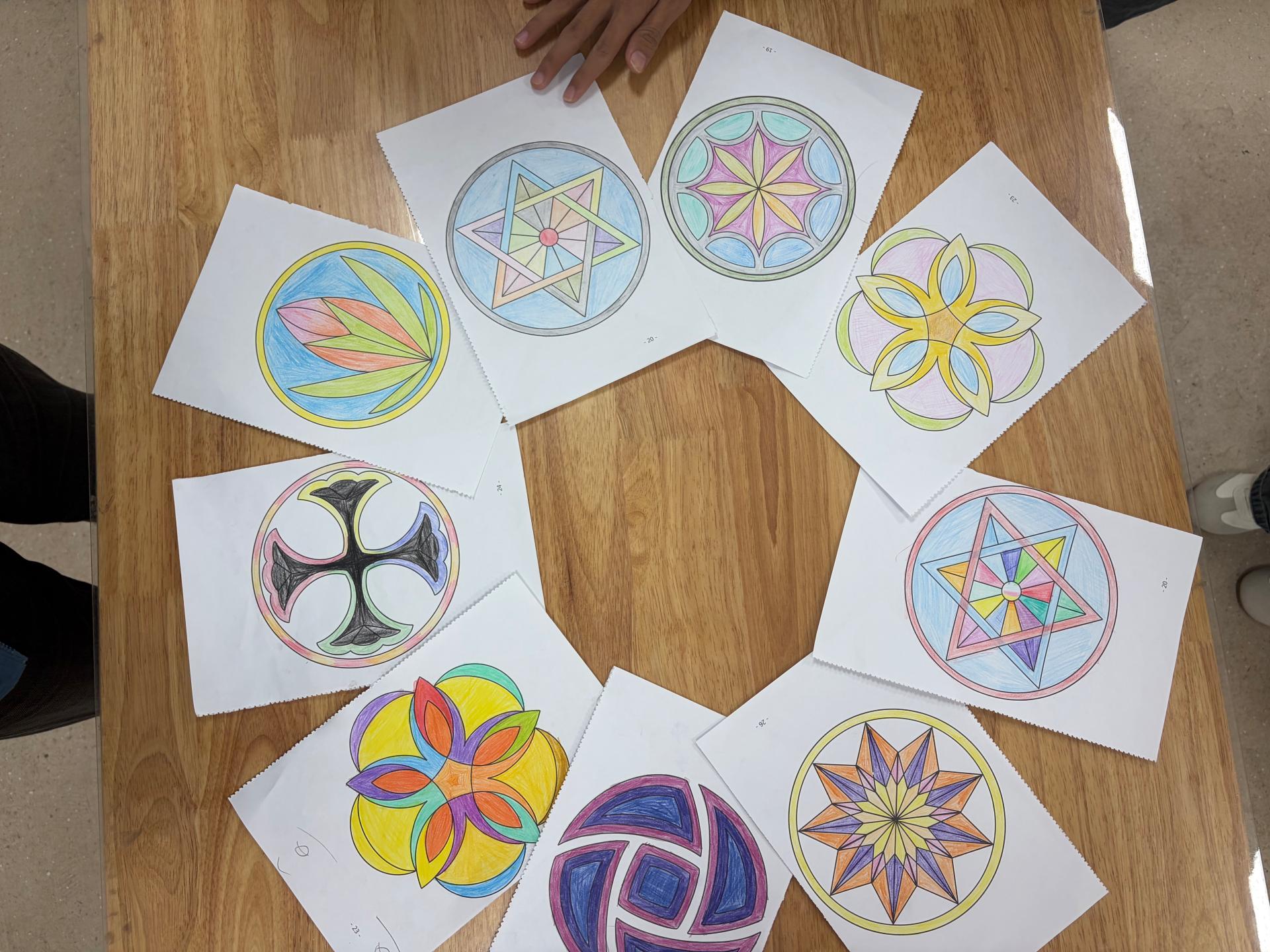 活动尾声,参与者们将曼陀罗绘画作品合影留念,同时也留下了集体照。相机不仅记录了他们现阶段的自我发现,还定格下一张张洋溢着笑容的脸庞。一纸曼陀罗,既是情绪的出口,也是勇气的底气。这场治愈之约,让大家在艺术创作中汲取力量,在真诚分享中收获成长,遇见更好的自己。