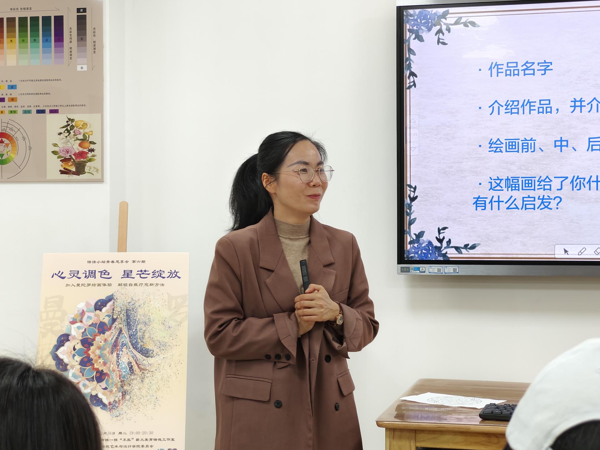 12月16日晚,敷文艺创·悟语小站开展了一期别开生面的曼陀罗绘画疗愈活动,活动主题为“心灵调色 · 星芒绽放”。本次活动在“不孤”薪火美育铸魂工作室举办,由中共南宁学院艺术与设计学院委员会主办、“不孤”薪火美育铸魂工作室承办 ,活动邀请到我校黄燕琼副教授作为嘉宾导师。