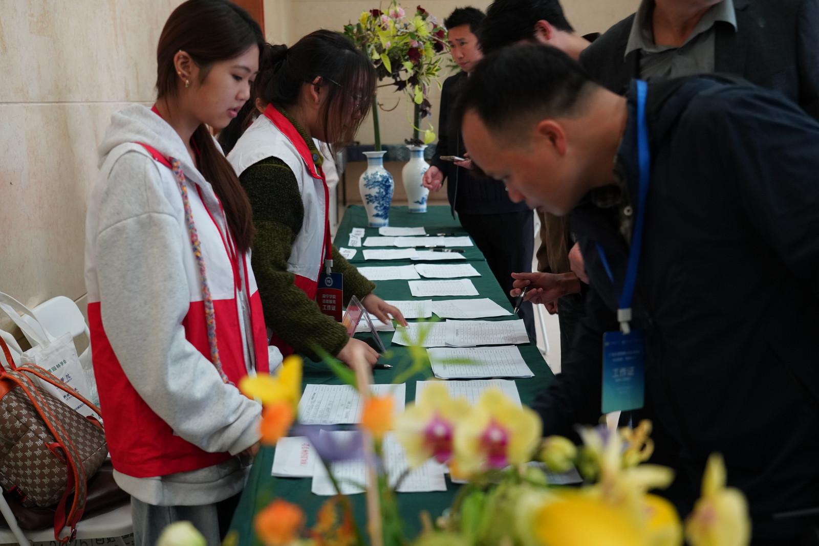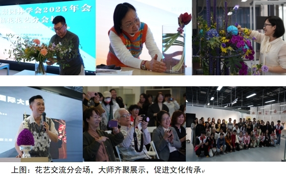 花艺交流与盆景制作演示分会场:作为本次年会的亮点之一,花艺交流与盆景制作演示分会场吸引了众多目光。东方撒艺传统插花学校校长钱波等花艺大师亲临现场,创作展出并表演授课,为中国传统插花、泰国花艺、国际风格现代花艺进行了精彩讲解。40多位来自广西及全国的优秀插花花艺师创作了50余件异彩纷呈的作品,为与会者带来了一场视觉盛宴。