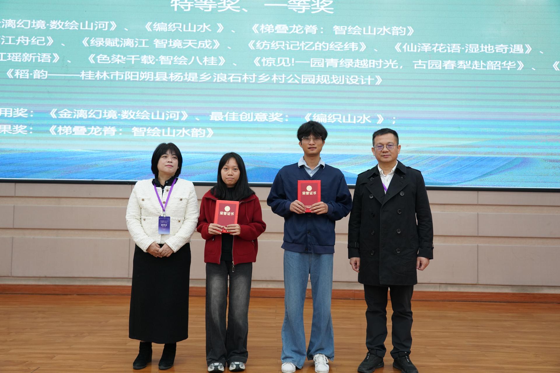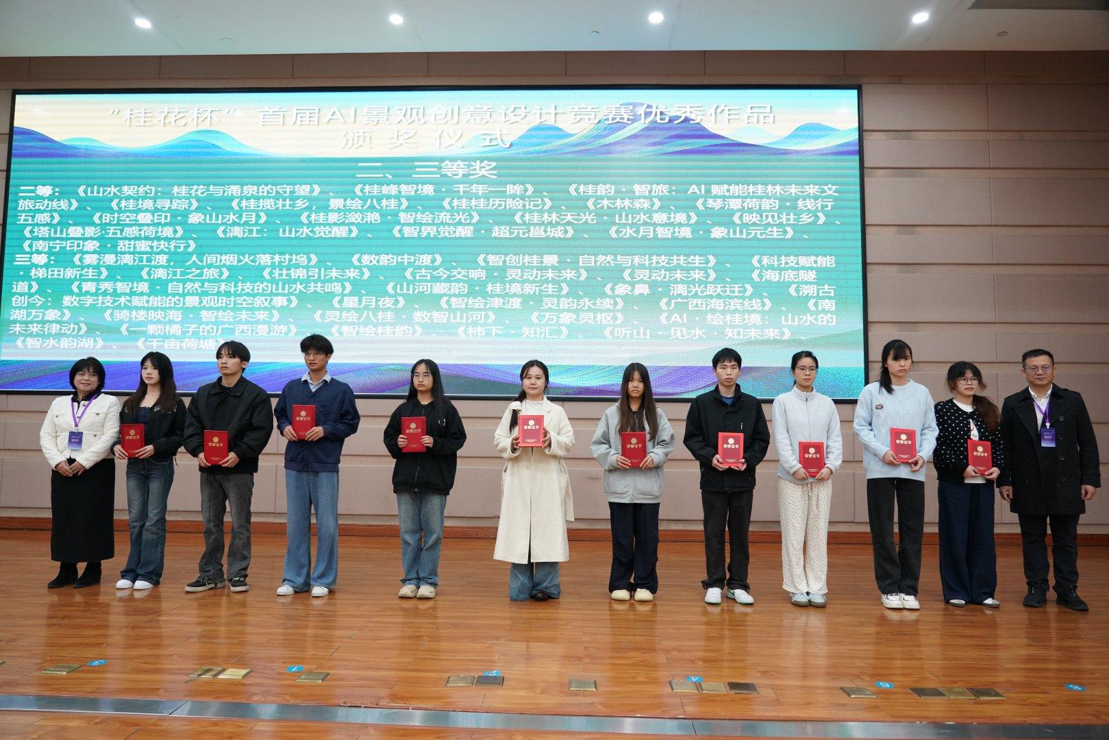 在本届年会上,南宁学院成绩斐然,收获满满。学院凭借在年会筹备组织、推动行业发展等方面的突出贡献,荣获“最佳贡献单位奖”。学院黄雁、雷维群两位老师分别获聘广西风景园林学会女风景园林师、教学专业委员会副主任。同时,在首届AI景观创意设计竞赛中,南宁学院师生大放异彩,作品凭借创新理念与精湛技术,一举斩获特等奖、一等奖、二等奖、三等奖等多个奖项,尽显学院在风景园林领域的强劲实力与无限潜力 。
