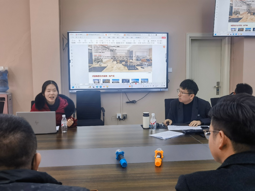 艺术与设计学院院长黄宇教授向华为鸿蒙智家代表介绍我院的基本情况,结合环境设计专业与工艺美术专业与华为鸿蒙智的深入合作,提出与南宁学院·华为数字技术产业学院共同教学合作,以及通过微专业的短时间培训进行就业合作的合作模式。双方就就业合作的具体条陈进行激烈的讨论,提出校内参与项目,毕业入职考证的具体路径。