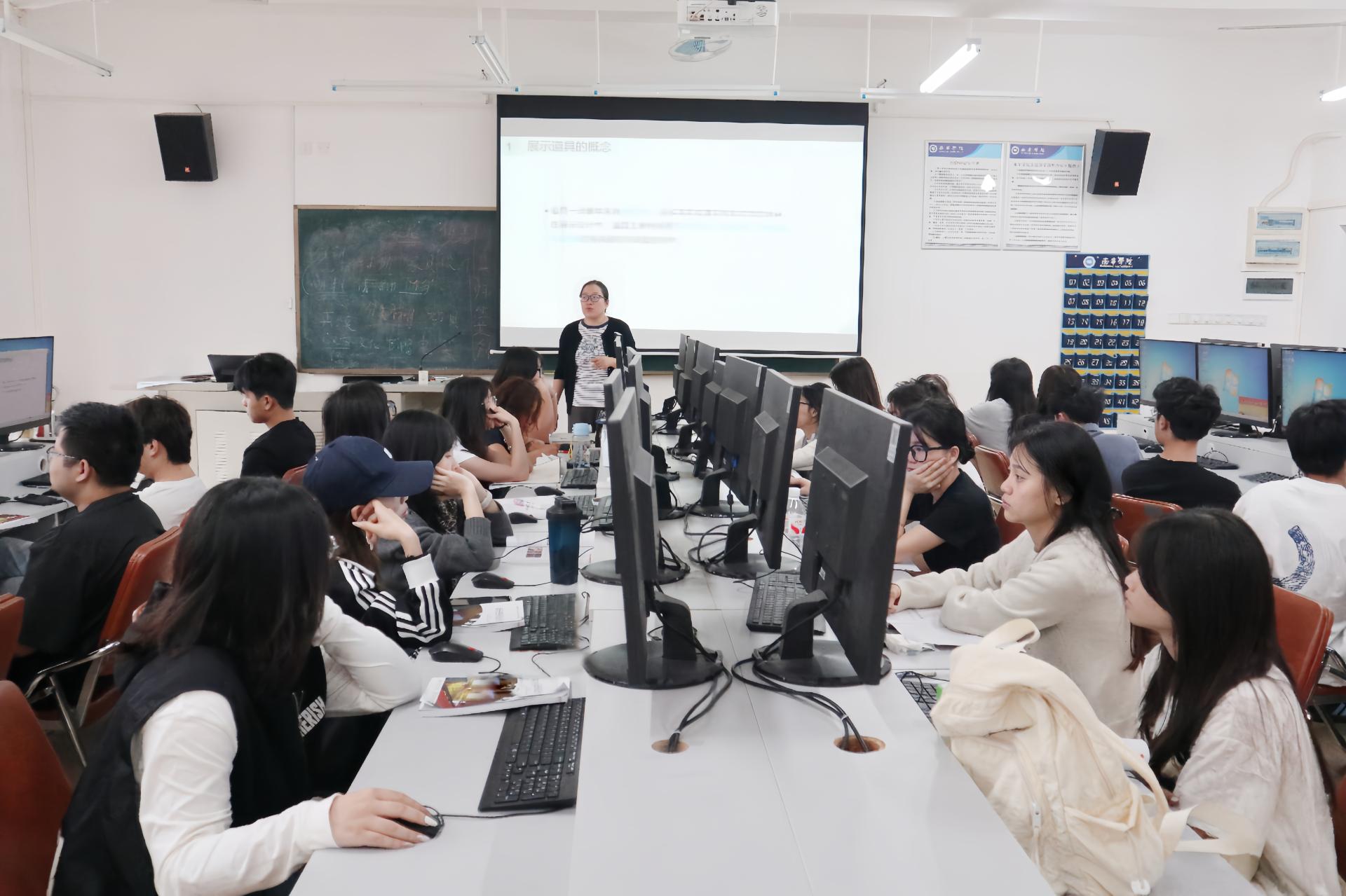 课堂上,秦莉萍老师紧扣课程核心教学内容,重点围绕展台分类、展示道具类型两大核心知识点展开系统讲解。授课过程中,她思路清晰、逻辑严谨,授课语言贴合环境设计专业特性,专业术语规范、讲解深入浅出,精准把握教学重难点,将理论知识与专业实践紧密结合,充分展现了成熟的课堂把控能力。同学们全程专注听讲、认真做好课堂笔记,紧跟教师授课节奏主动思考,互动提问环节积极踊跃回应,课堂互动氛围融洽有序,课堂状态良好。完成核心理论知识讲授后,秦老师组织学生开展项目式展板制作实操任务。实操环节中,她深入各小组逐一进行针对性实训指导,耐心解答学生疑问、细致纠正操作细节,引导学生将理论知识转化为实践技能。整个课堂理论教学扎实有序、实操训练针对性强,学习氛围浓厚热烈,充分彰显了环境设计专业理实结合的教学特色与学生积极向上的学习风貌。