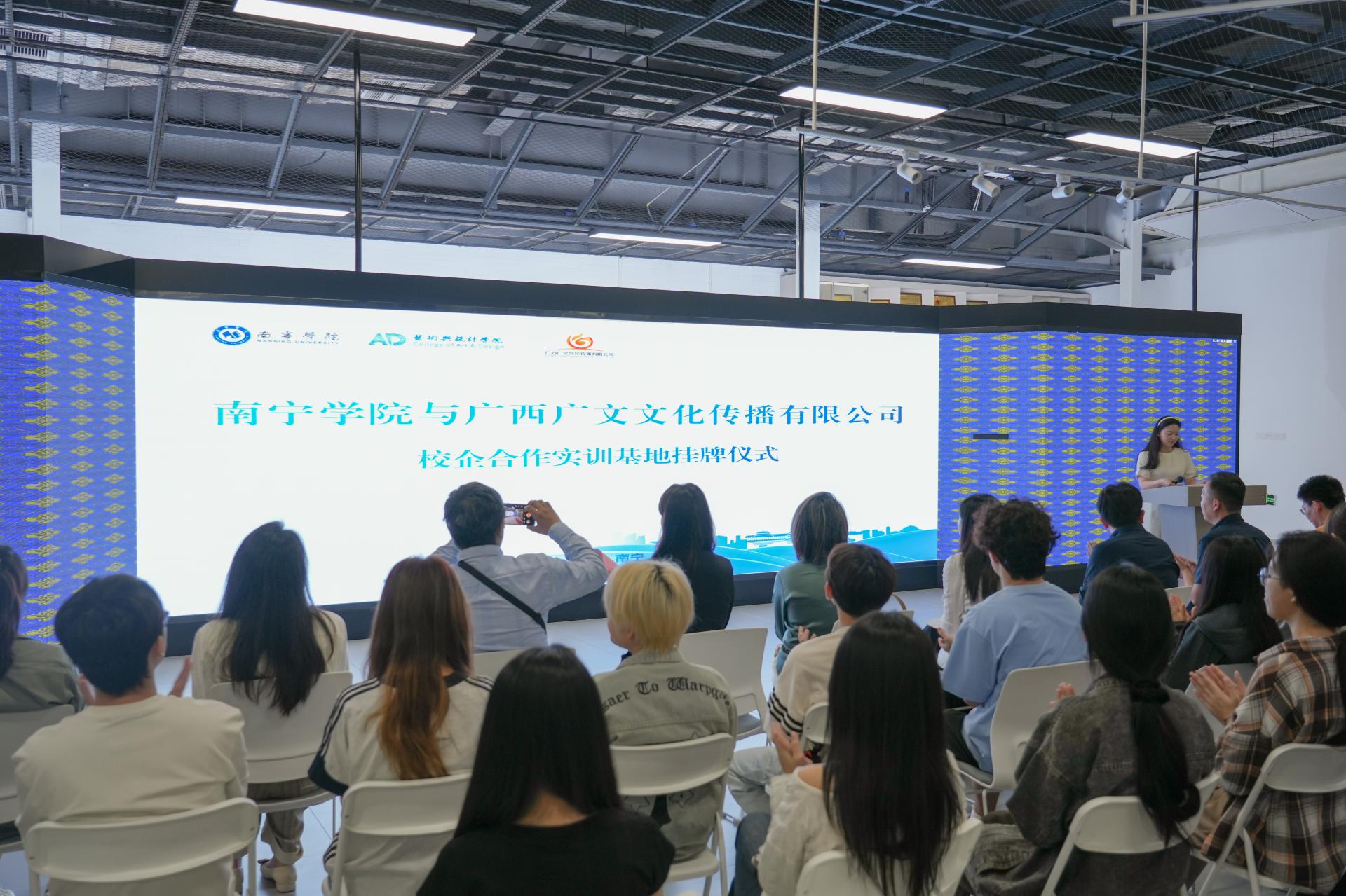 仪式于16时正式开始,由南宁学院艺术与设计学院新媒体教研室主任任梦琪主持。她首先介绍了到场嘉宾,并阐述了本次合作的重要意义。