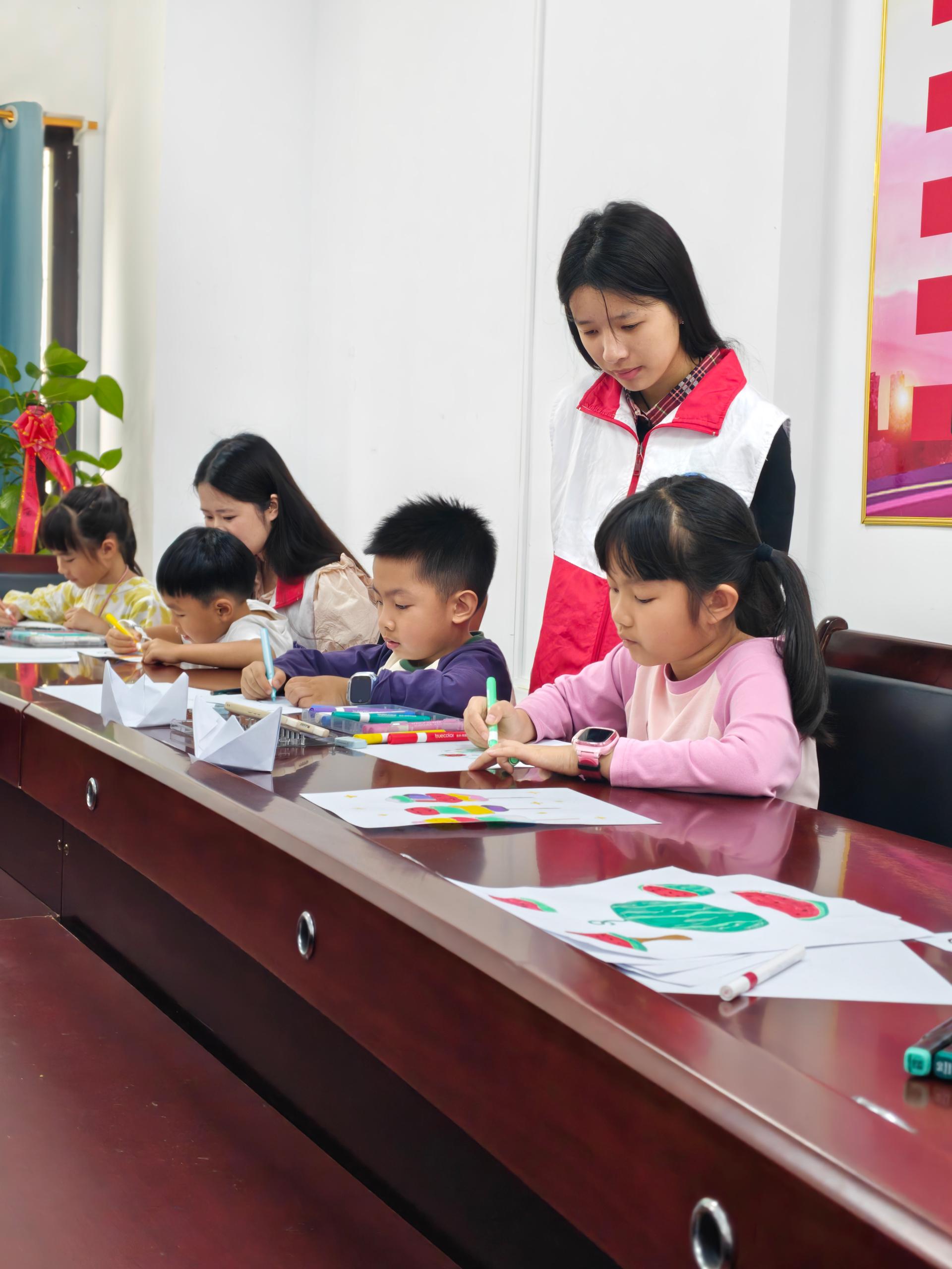 第二队师生志愿者则走进永福社区,开展面向社区小朋友的艺术辅导与学业帮扶活动,用专业知识为孩子们的成长赋能。活动现场,志愿者们结合艺术与设计专业特色,为小朋友们带来了生动有趣的绘画教学课。从基础的线条勾勒到色彩搭配,志愿者们耐心讲解、细致示范,引导孩子们发挥想象力,用画笔描绘心中的美好世界。孩子们兴致高昂,认真创作,一幅幅充满童真与创意的画作逐渐呈现。