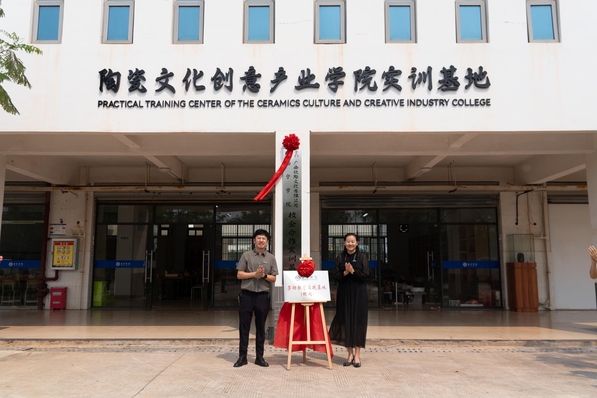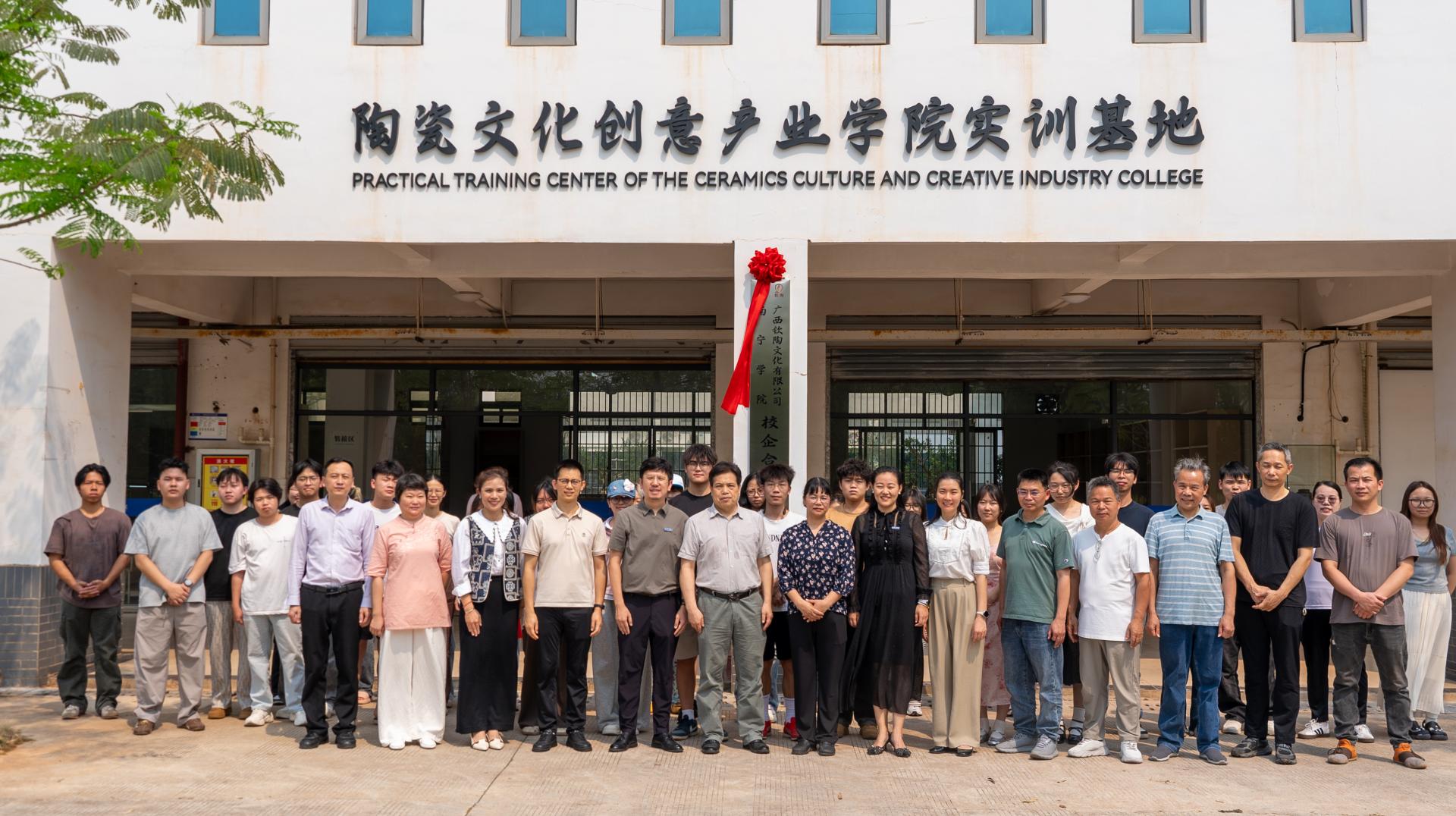 在热烈的掌声中,揭牌仪式正式举行。王宁章副校长、黄盈大师、杨汉宁副处长与黄宇院长共同为“陶瓷文化创意产业学院实践基地”揭牌,王静静处长与黄宇院长共同为“南宁学院劳动教育基地”揭牌。两项揭牌不仅象征着校企合作迈入新阶段,也为学生提供了更加广阔的实践平台与成长空间。