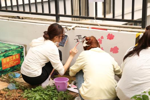 此次墙绘志愿服务,不仅是艺术与设计学院学子将专业知识转化为社会实践的生动实践,更是 “以美育人、以文化人” 的鲜活体现。志愿者们用画笔美化校园环境,用创意传递传统文化,在实践中锤炼了专业技能,更用青春力量为孩子们打造了沉浸式的美育空间,让四季之美、劳动之美、文化之美浸润童心。