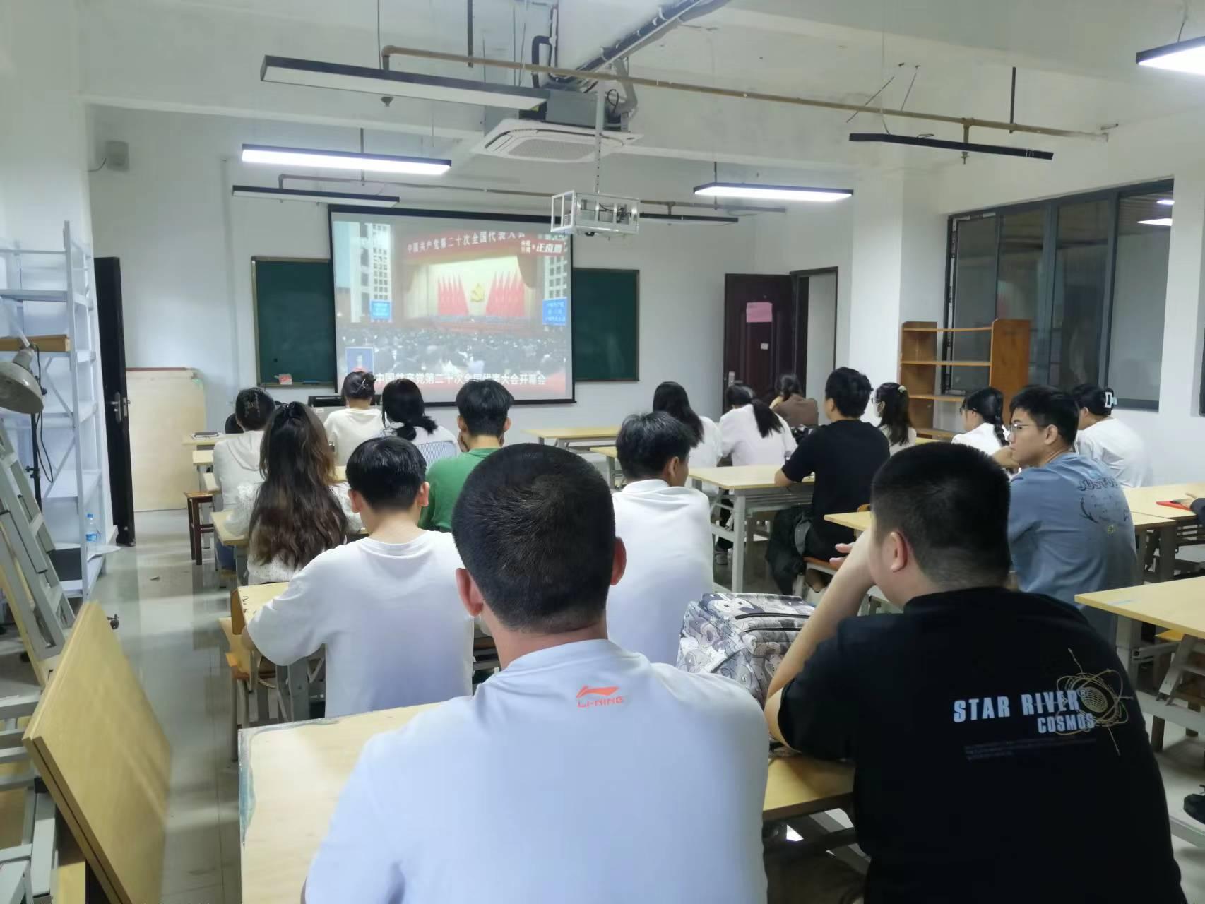 10月16日上午10时,备受瞩目的中国共产党第二十次全国代表大会在北京人民大会堂隆重召开,习近平总书记代表十九届中央委员会向大会作报告。为认真组织好大会精神的学习贯彻,艺术与设计学院组织学生党员收看收听学习党的二十大精神。学生党员在敷文园综合楼111教室、301教室、309教室、310教室分支部集中收看开幕会盛况。