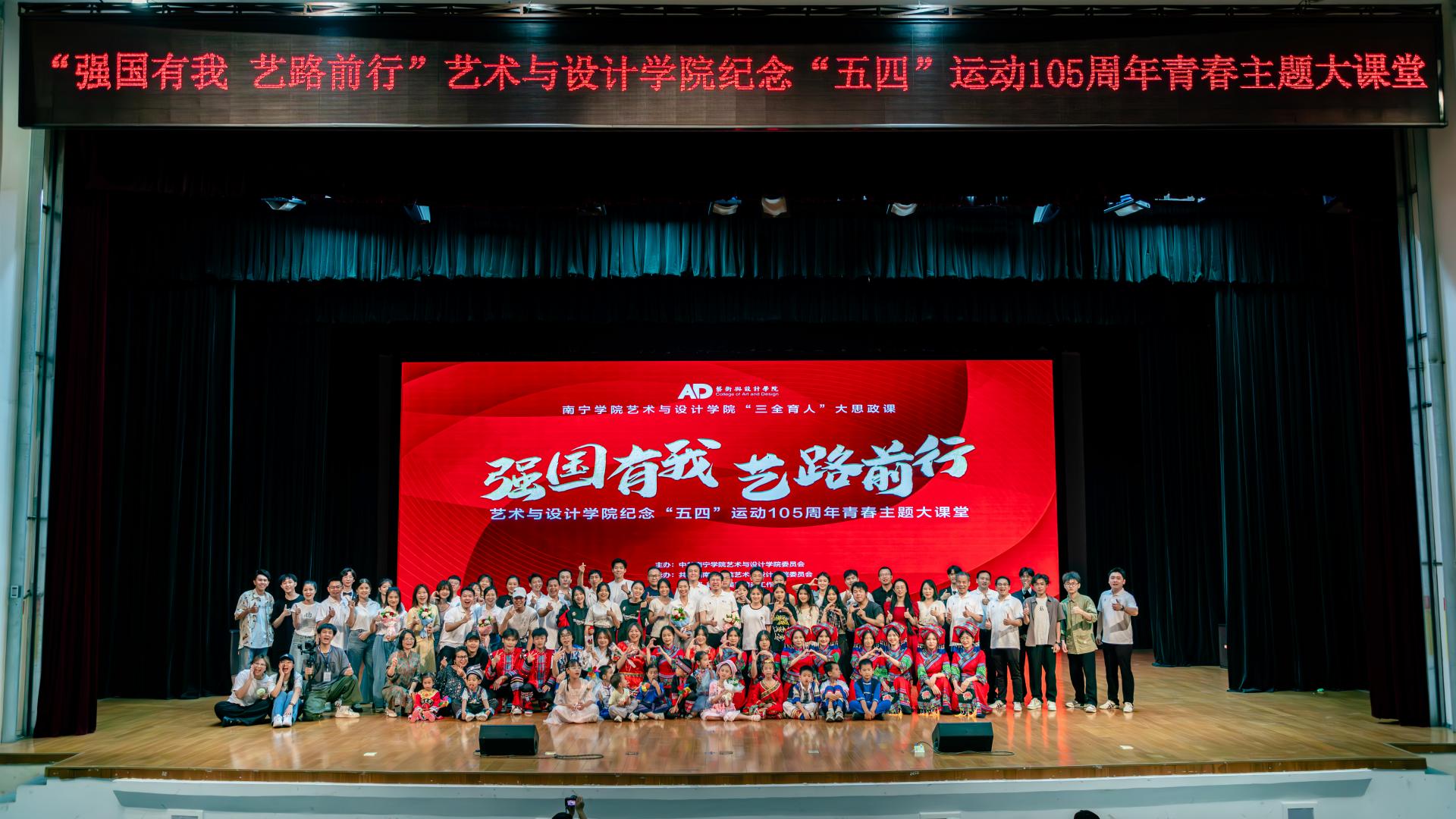 为纪念“五四”运动105周年落实立德树人根本任务探索“三全育人”工作路径,428艺术与设计学院在演艺中心创新开展强国有我 艺路前行主题的青春大课堂。