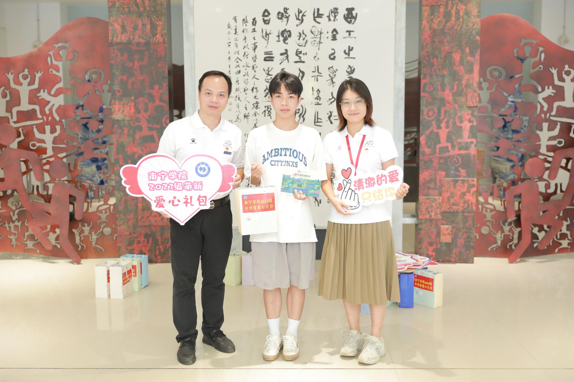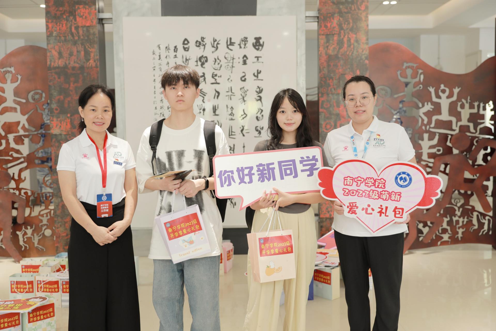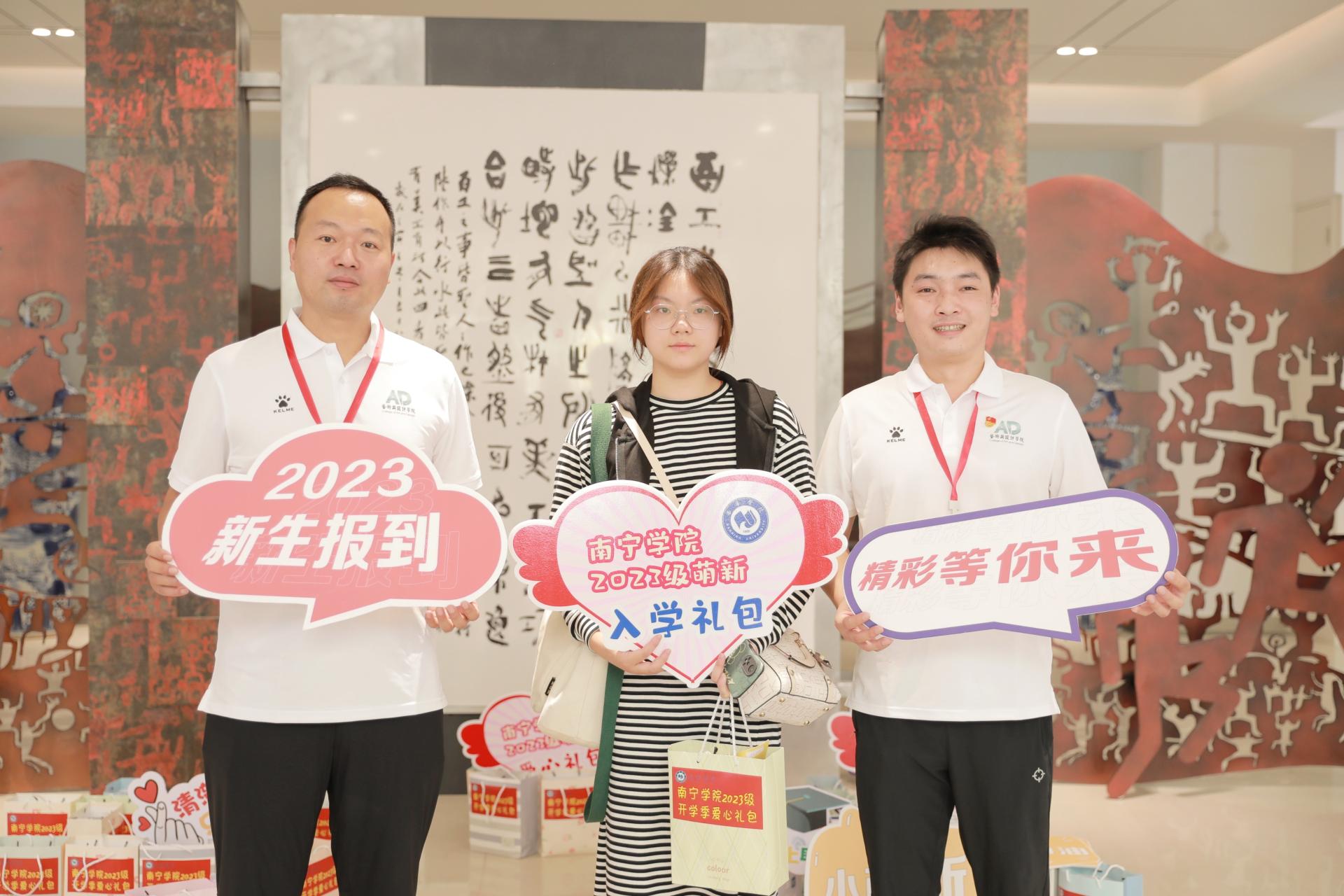 新生报到期间,学院领导亲临迎新现场亲切慰问迎新工作人员和师生志愿者,认真指导各项迎新工作开展,叮嘱大家尽可能为新生提供周到的服务保障,确保新生有序报到,快速融入校园生活。院长杨小凤,副院长蓝志军、徐党卿在迎新现场与新生亲切交流,并为2023级新生代表送上爱心大礼包,鼓励同学们努力勤学奋进,励志成长成才。在学院迎新现场,专业教师代表热心解答新生在专业学习上的疑惑,学院全体辅导员、学生干部和志愿者全程为新生提供暖心服务,温暖与感动萦绕校园。