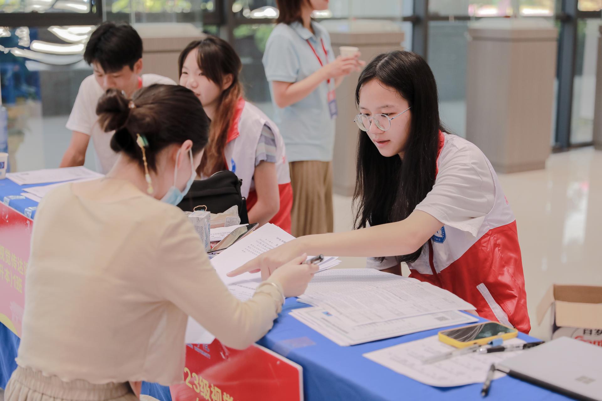 9月2日至3日,艺术与设计学院2023级专升本新生接待工作在敷文综合楼一楼大厅全面开展。在学院领导的统筹安排下,各科室、各教研室团结协作,辅导员助理、学生志愿者齐心协力,圆满完成2023级专升本新生接待工作。