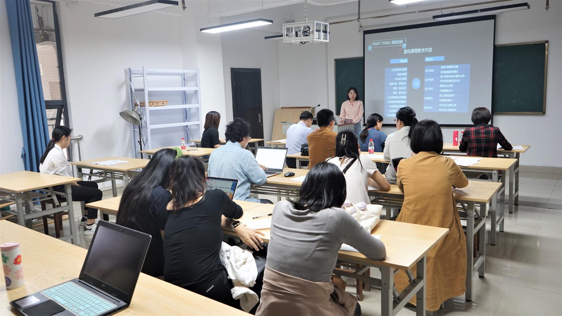 为传播先进的教学理念,鼓励教师在教学方法、教学手段、考核方法等方面勇于创新实践,2022年11月22日下午,学院在综合楼301开展了艺术与设计学院2022年教学创新大赛暨教学观摩活动。此次大赛评委组由校级督导唐兰教授、项群娟教授和院级督导蓝志军副教授、王春伟副教授及全国教学创新大赛三等奖获得者陈少华老师担任。院内部分教师现场观摩了此次大赛。