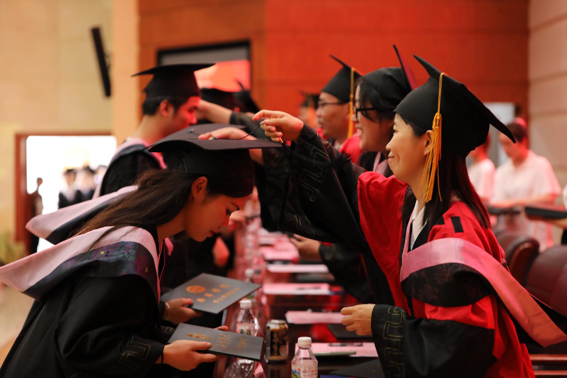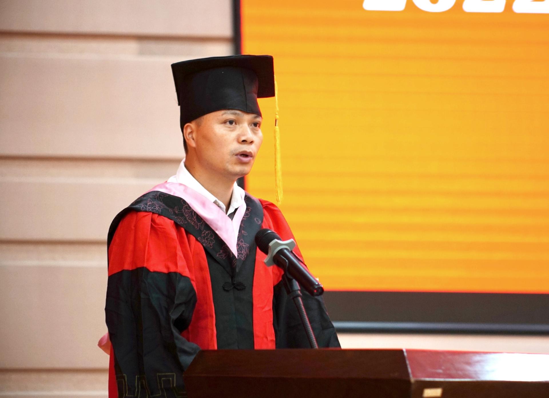 毕业典礼在庄严的国歌中拉开序幕。典礼上,首先由蓝志军副院长宣读获得学士学位的学生名单以及获得校级优秀毕业生的名单,接着,就座在主席台上的学位委员会委员为校级优秀毕业生颁发荣誉证书。随后,院长杨小凤为2022届毕业生代表颁发毕业证。学院学位评定委员会委员为获得学士学位的毕业生拨穗正冠、授予证书。