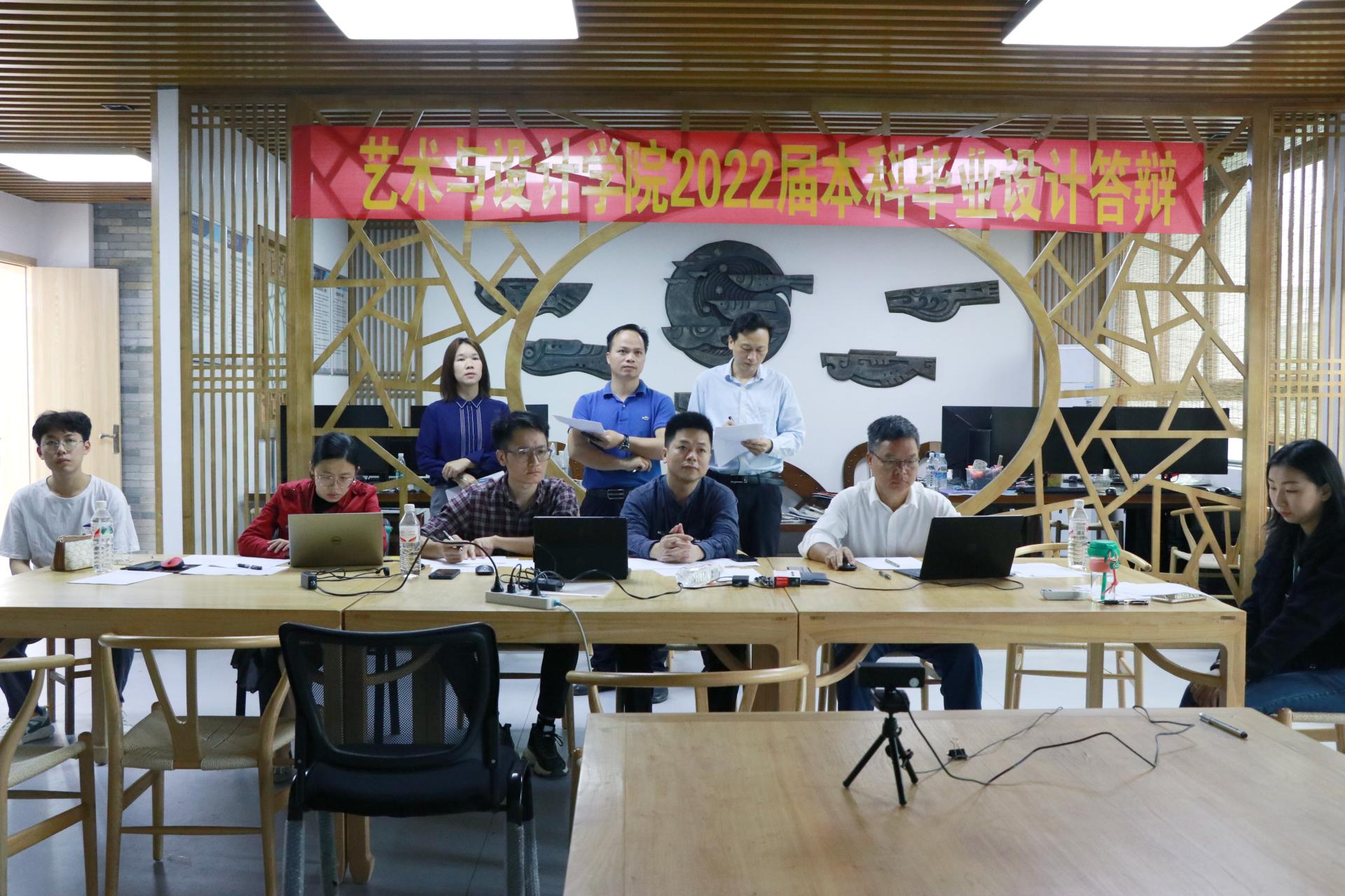 2022年5月7日、8日,按照疫情防控的有关要求,艺术与设计学院工艺美术、环境设计、视觉传达设计专业共343名学生在线上进行了首次毕业设计答辩。此次答辩采用腾讯会议、钉钉两个平台进行,学院共43名从事教学科研工作的教师分批次组成24个答辩组,集中南硅谷A的6个答辩场地在线听取了学生的毕业设计(报告)自述汇报,并就毕业设计的创作意义、创作方法、作品分析、报告写作规范等方面进行了问答,指出不足之处,并提出进一步完善的修改意见。各答辩组工作有条不紊开展,整个线上答辩过程流畅顺利,学校相关督导全程参与答辩工作,对此次线上答辩的工作组织、工作规范、答辩内容以及工作效果给以肯定。