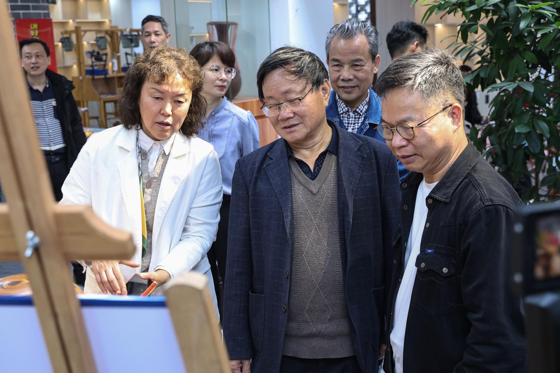 南宁学院副校长李陶深向钦州市工艺美术协会会长周三平、桂林市工艺美术协会会长付新阳