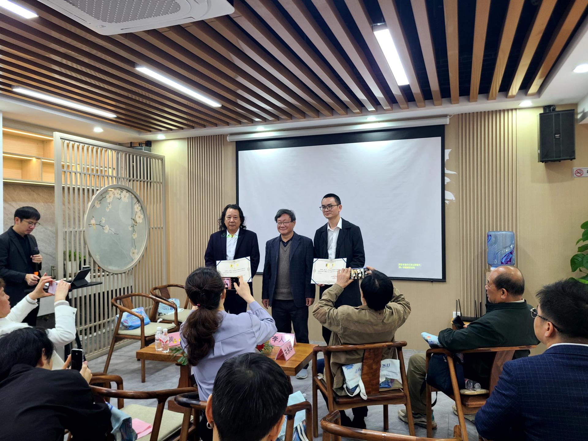 最后,南宁学院副校长李陶深为向受邀专家和第十届广西工艺美术大师颁发了南宁学院陶瓷创意文化产业学院校外指导老师聘书。